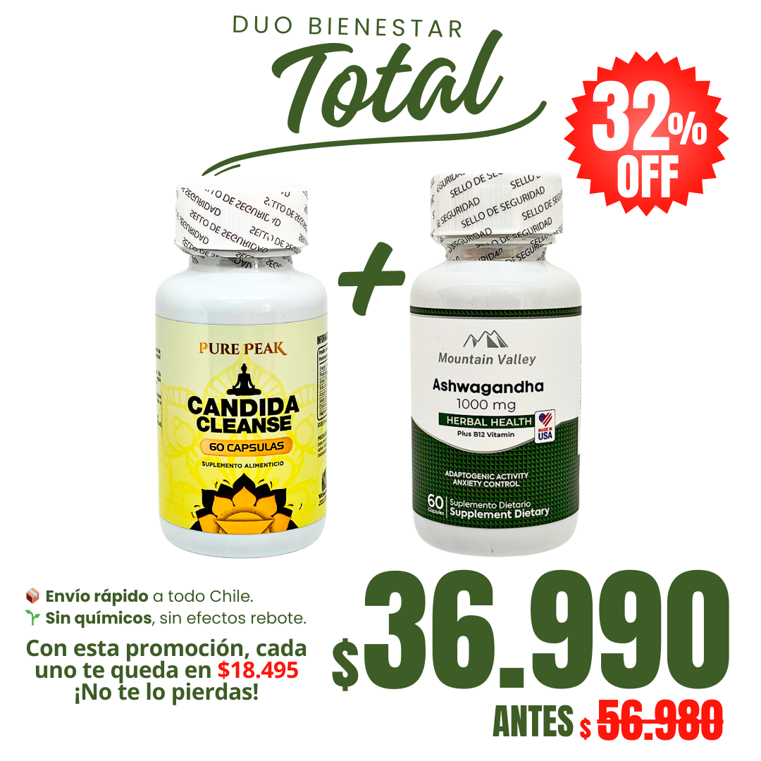 Duo Bienestar TotalAshwangandha + Candida Cleanse con 32% CHILE